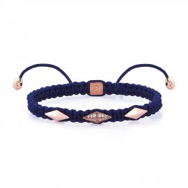 Blue Macrame 18K Gold Iconic Diamondback (3) Bracelet in Rose w/ Diamonds